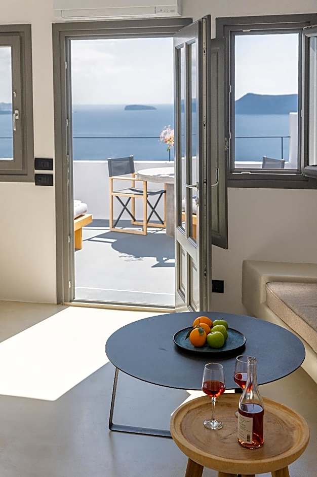 The Boatman’s House features a cozy and minimal setup boasting a single clean open space with a queen-size bed, a small dining table and a bathroom with a walk-in shower. The house features a terrace with a Hot Tub and a futon arrangement for soaking up the stunning Caldera and Oia village views.